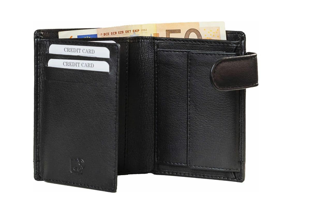 Este cartela de piel destaca por su diseño elegante y su discreto cierre a presión. Sofisticado y compacto, ofrece una organización óptima para tus tarjetas y billetes, añadiendo un toque de distinción a tu día a día