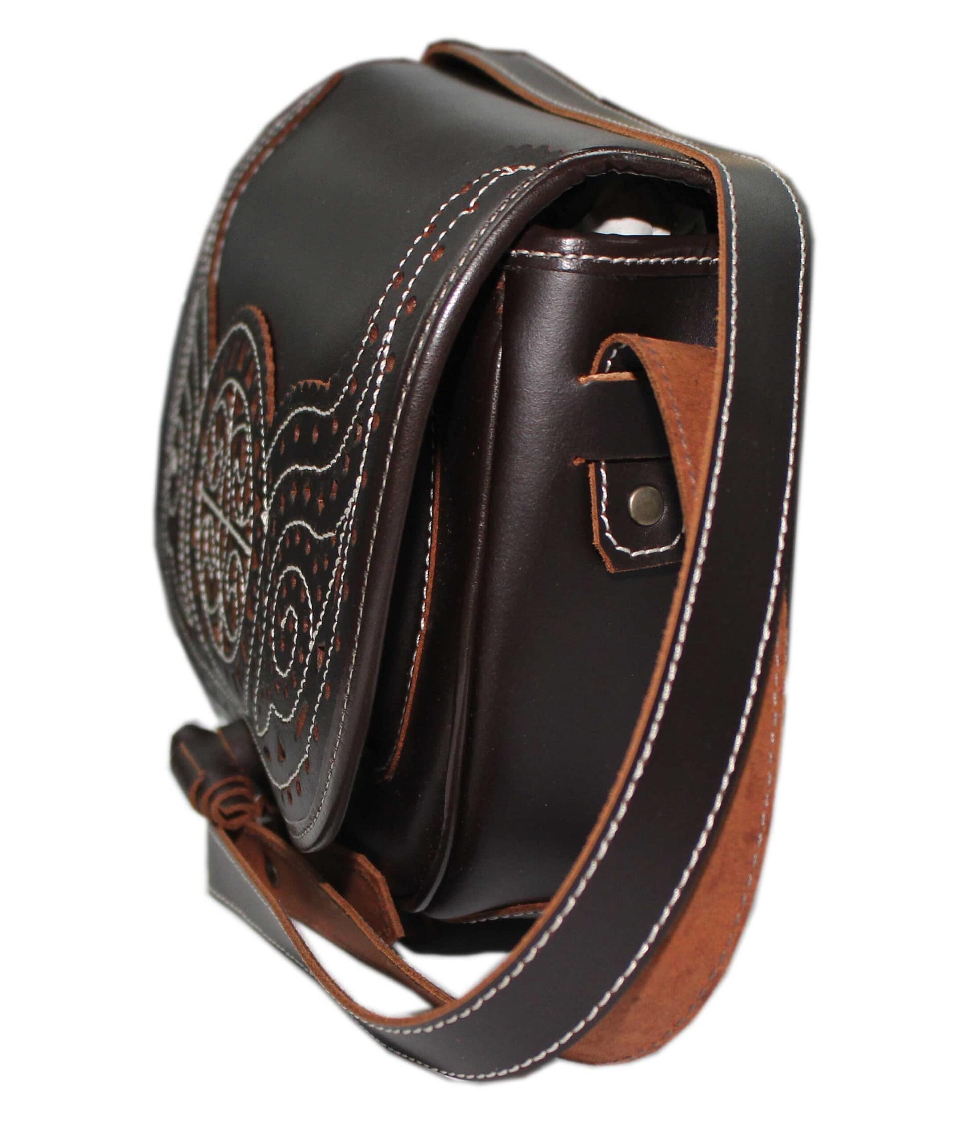 Fabricado en piel auténtica de alta calidad, cuenta con costuras cuidadas, cierre seguro y correa ajustable para llevarlo cómodamente al hombro o cruzado. Cada pieza es única, reflejo del trabajo artesanal y del respeto por los procesos tradicionales.