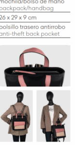 Bolso-mochila para mujer de estilo compacto, moderno y sofisticado. Pensada para mujeres prácticas que valoran la versatilidad sin perder elegancia, ofrece un equilibrio perfecto entre diseño y funcionalidad. Su tamaño reducido y ergonómico asegura comodidad en el uso diario, a la vez que mantiene una estética refinada. Confeccionada con materiales de primera calidad, destaca por su resistencia y durabilidad, convirtiéndose en un accesorio atemporal imprescindible en cualquier armario.