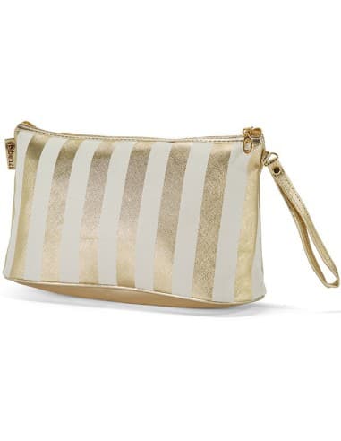 NECESER SEÑORA CON ASA DE MANO DE RAYAS COLOR ORO Y BLANCO
