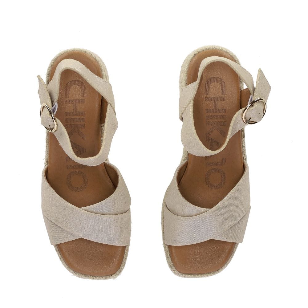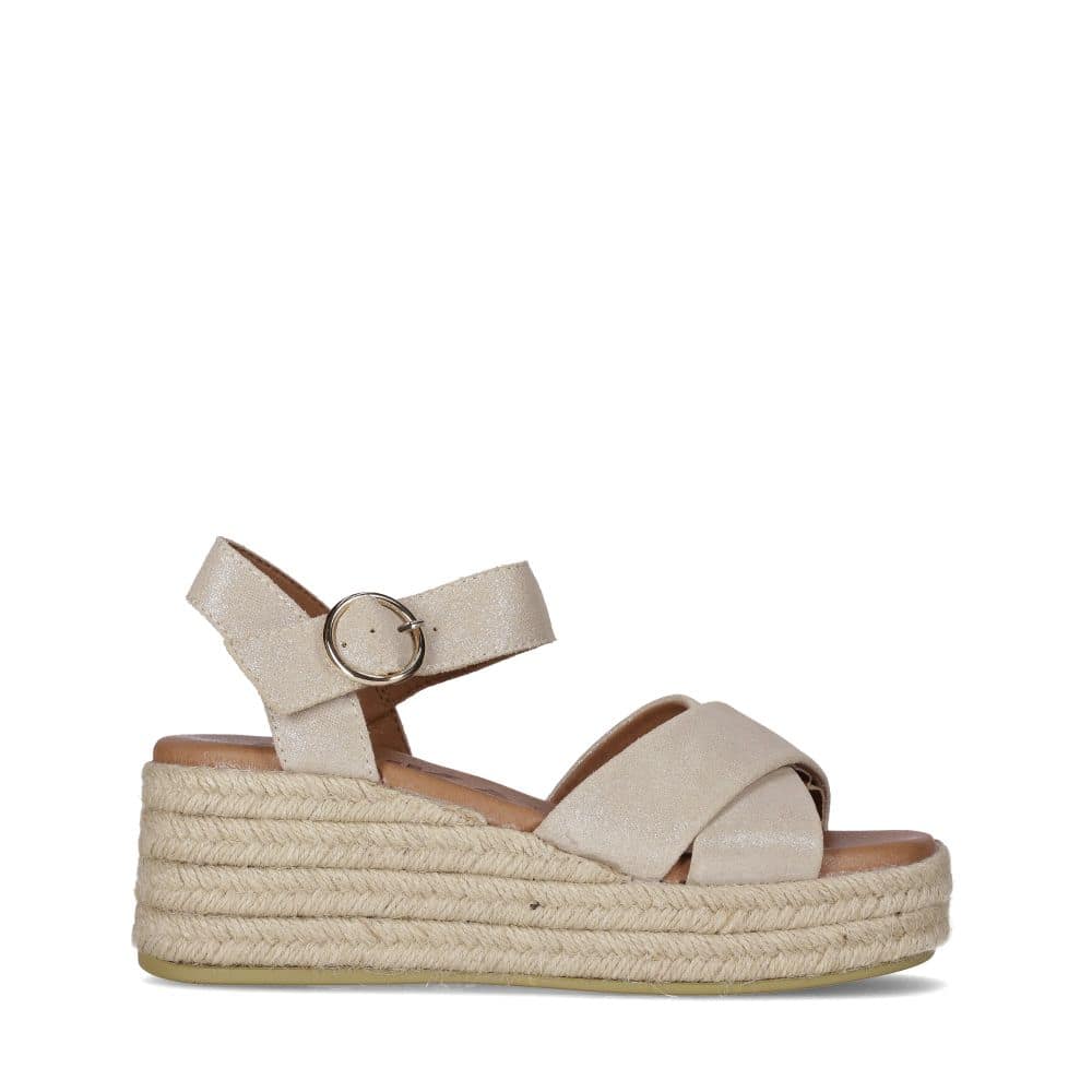 Sandalia con plataforma de mujer. Diseñada con una suela de estilo yute y elegantes tiras cruzadas que se cierran con una sofisticada hebilla metálica. La fusión ideal de comodidad y estilo para los días cálidos. ¡Realza tu look veraniego con el toque más chic de la temporada!